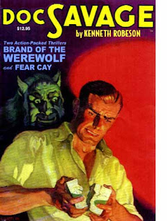 Review of Nostalgia Ventures pulp reprint #13. Doc Savage teams up with his beautiful cousin in the Lester Dent novels that introduced the character of Patricia Savage. First, the Man of Bronze and his Iron Crew investigate the murder of Doc's uncle. The only clues, a strange ivory cube and the mysterious "Brand of the Werewolf," set them on the trail of an ancient mystery. This pulp reprint includes a fascinating essay by historian Will Murray about the origins of Patricia Savage, but I really wish Murray would stop offering theories in between facts and giving readers the false impressions that such theories are facts. He's a gifted writer but the way he words his sentences you have to seek the underlying meanings. I suspect this is not as much the fault of Murray as it is with editor Anthony Tollin, who has repeatedly done this in other pulp reprints and magazine articles.